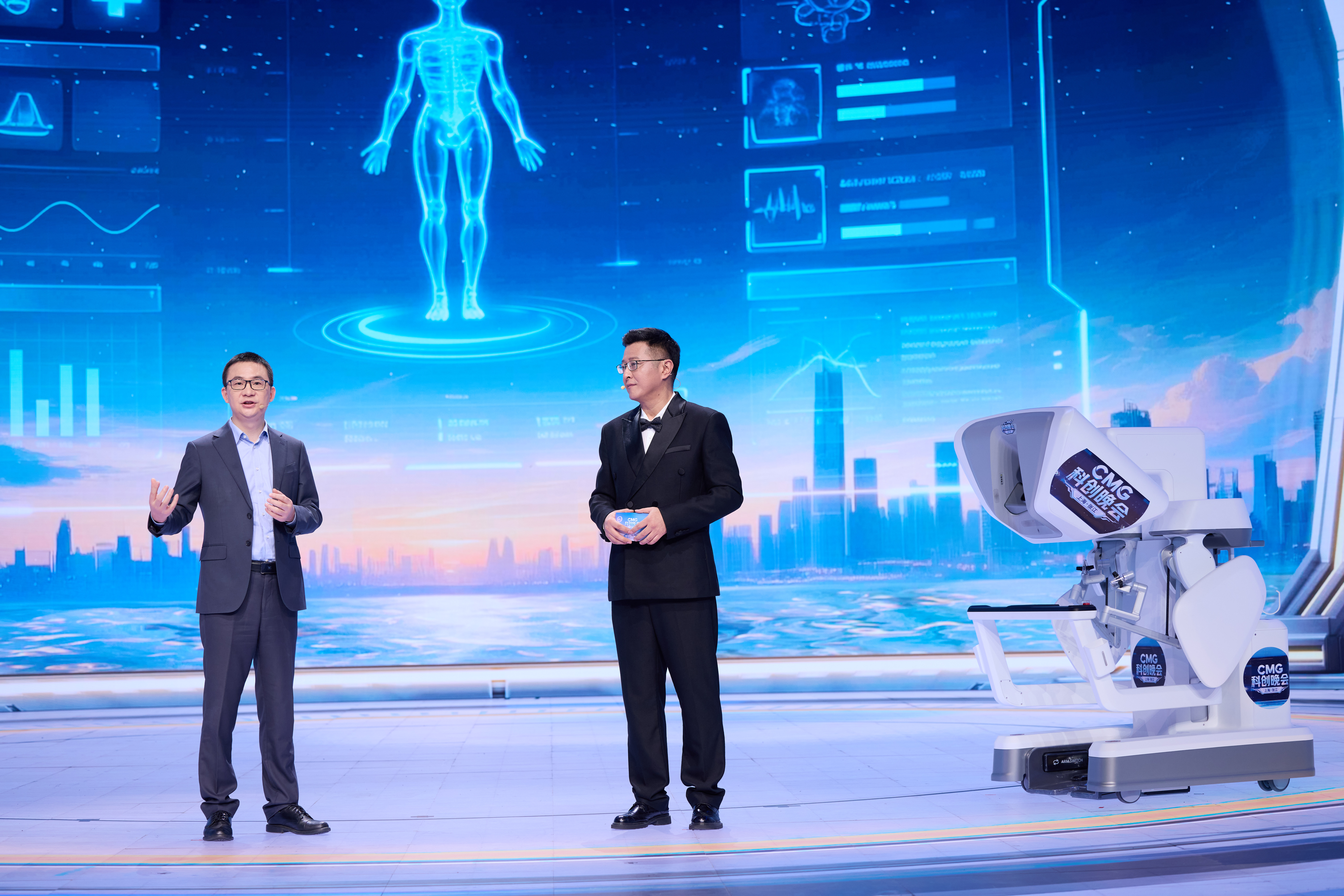 10月31日,由中央广播电视总台与上海市人民政府联合制作的《CMG科创晚会》(简称央视“科晚”)在CCTV-1黄金档盛大播出。国产图迈®多孔腔镜手术机器人(简称图迈®机器人)作为国产高端医学装备闪耀“名片”登上舞台,成为以“科技+艺术”融合精彩演绎科创故事的典范。