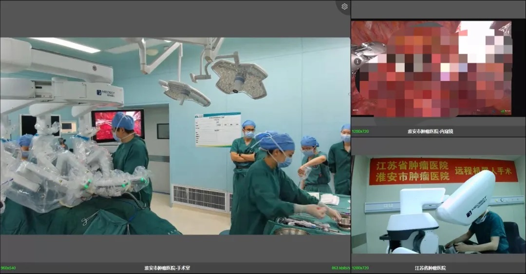 在此次5G手术开展前,江苏省肿瘤医院已赴淮安成功实施两台高难度机器人辅助肾癌与肺癌手术。杨杰主任医师团队和李明主任医师团队与淮安方面全面对接,形成“帮扶—协作—教学”的完整闭环。此次手术,江苏省肿瘤医院副院长蒋峰带领手术、麻醉、护理团队,与淮安肿瘤医院张月清副院长带领的专家团队密切配合,为远程手术提供了强有力的组织保障和技术支持,目前两位患者恢复良好。