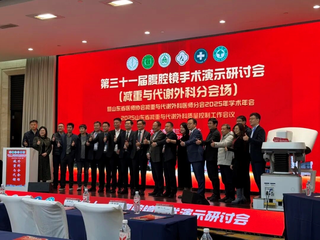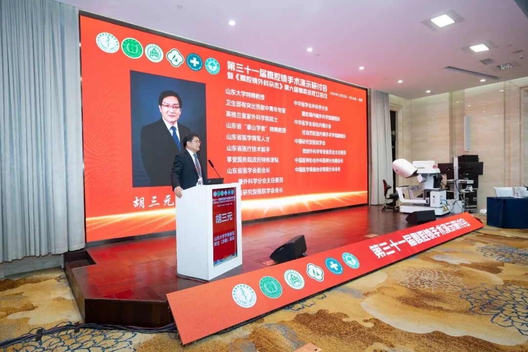 日前,由山东省研究型医院学会、《腹腔镜外科杂志》主办,山东大学齐鲁医院、山东第一医科大学第一附属医院、山东大学齐鲁第二医院、树兰(济南)医院承办的第三十一届腹腔镜手术演示研讨会在泉城济南成功举办。本次大会邀请了来自全国26个省市417位知名腹腔镜外科专家围绕腔镜相关新理论、新技术、新进展进行专题讲座、研讨和手术演示,吸引了来自省内外的数千名代表通过线上线下参加会议。大会举办期间,山东省研究型医院学会会长、山东大学齐鲁医院普外科学术带头人、树兰(济南)医院院长、著名腹腔镜外科专家胡三元教授以图迈®机器人成功完成全球首次机器人远程减重代谢手术直播成为全场焦点。