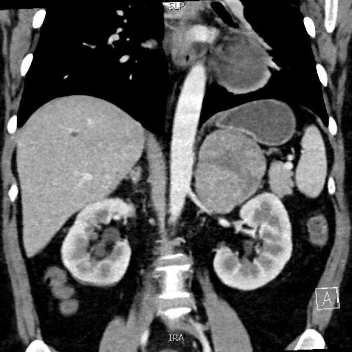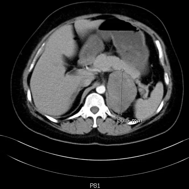 2周前,46岁的顾女士在一次轻度活动后感觉自己喘得厉害,双腿也出现浮肿,于是来到上海市东方医院心血管内科就诊。然而经过系统检查却发现:顾女士的病症并非源自心血管——影像学结果显示她的左侧肾上腺区赫然存在一个直径约8.5厘米的巨大实性占位,高度怀疑恶性,于是患者转至泌尿外科主任杨国胜教授处求诊。